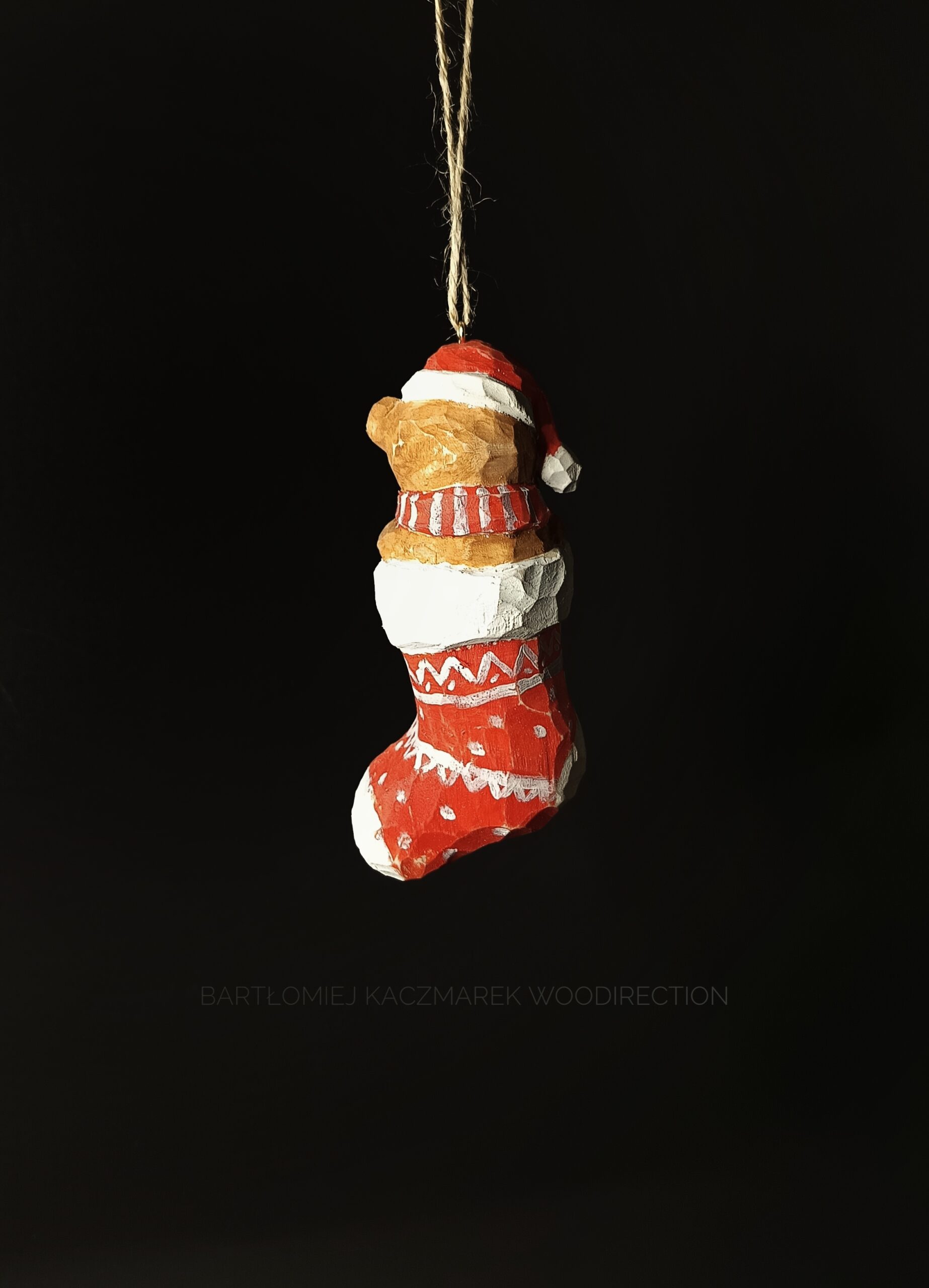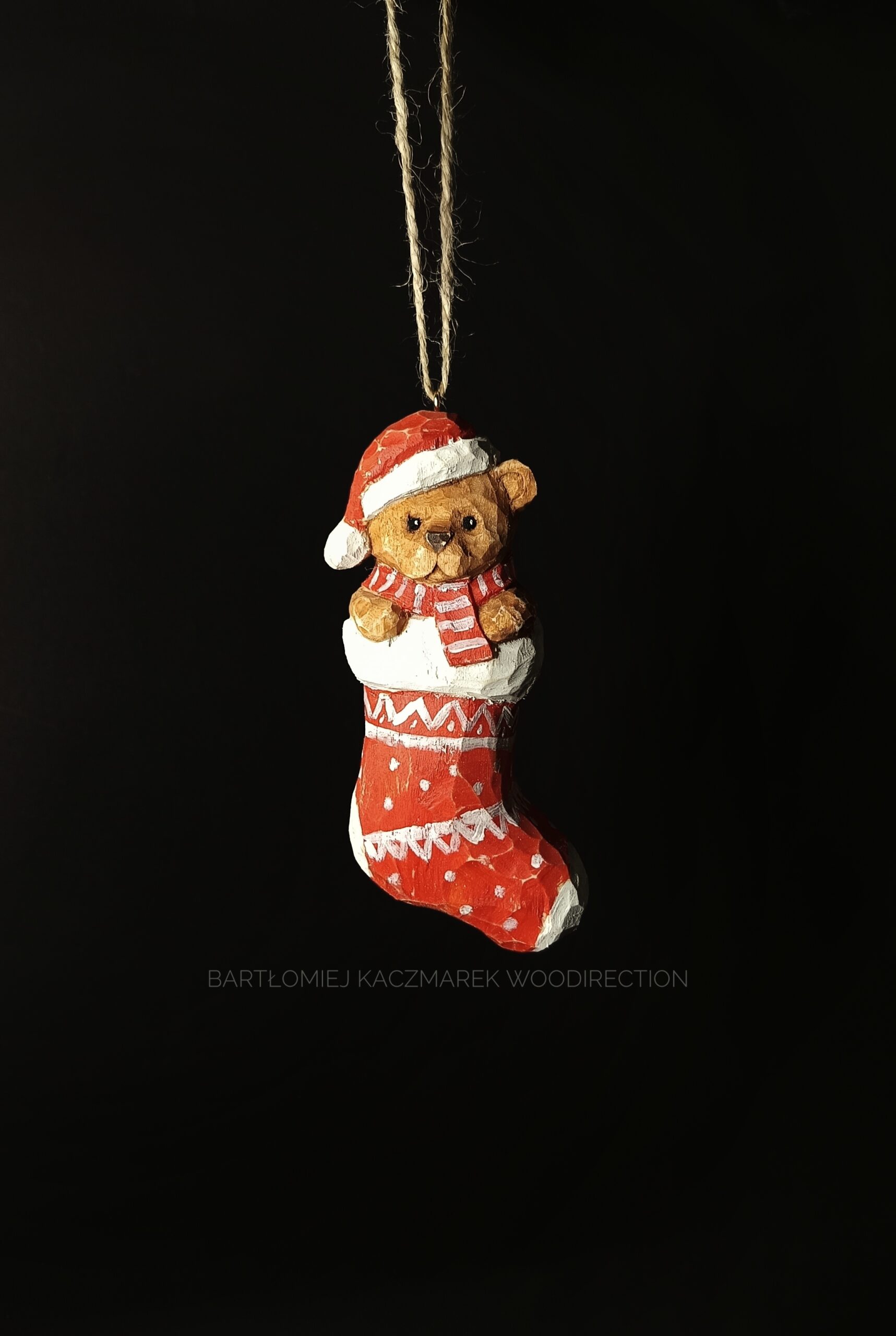 Ręcznie rzeźbiona ozdoba choinkowa, której każdy detal i kształt, tworzyłem używając tylko najwyższej jakości drewna i moich ulubionych ręcznych narzędzi.