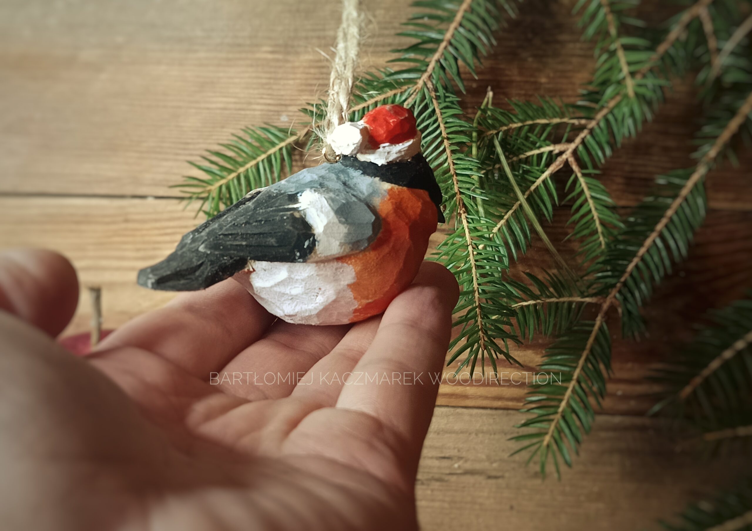 Ręcznie rzeźbiona ozdoba choinkowa, której każdy detal i kształt, tworzyłem używając tylko najwyższej jakości drewna i moich ulubionych ręcznych narzędzi.