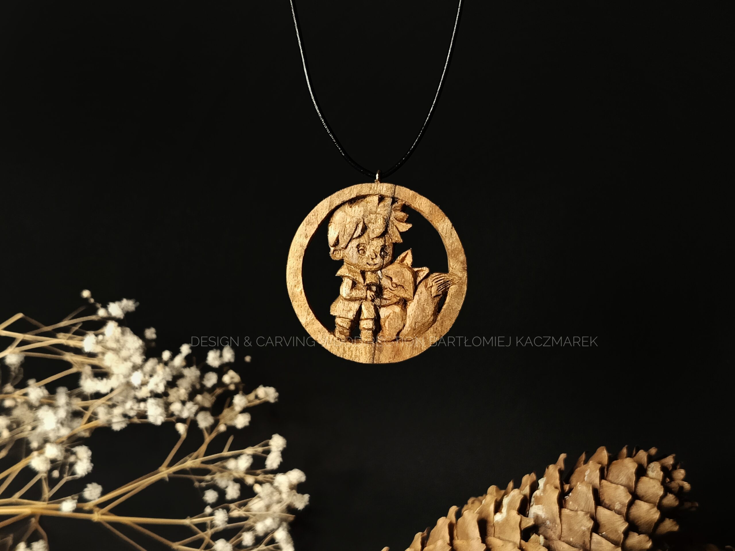 Ręcznie rzeźbiona zawieszka, której każdy detal i kształt, tworzyłem używając tylko najwyższej jakości drewna i moich ulubionych ręcznych narzędzi.