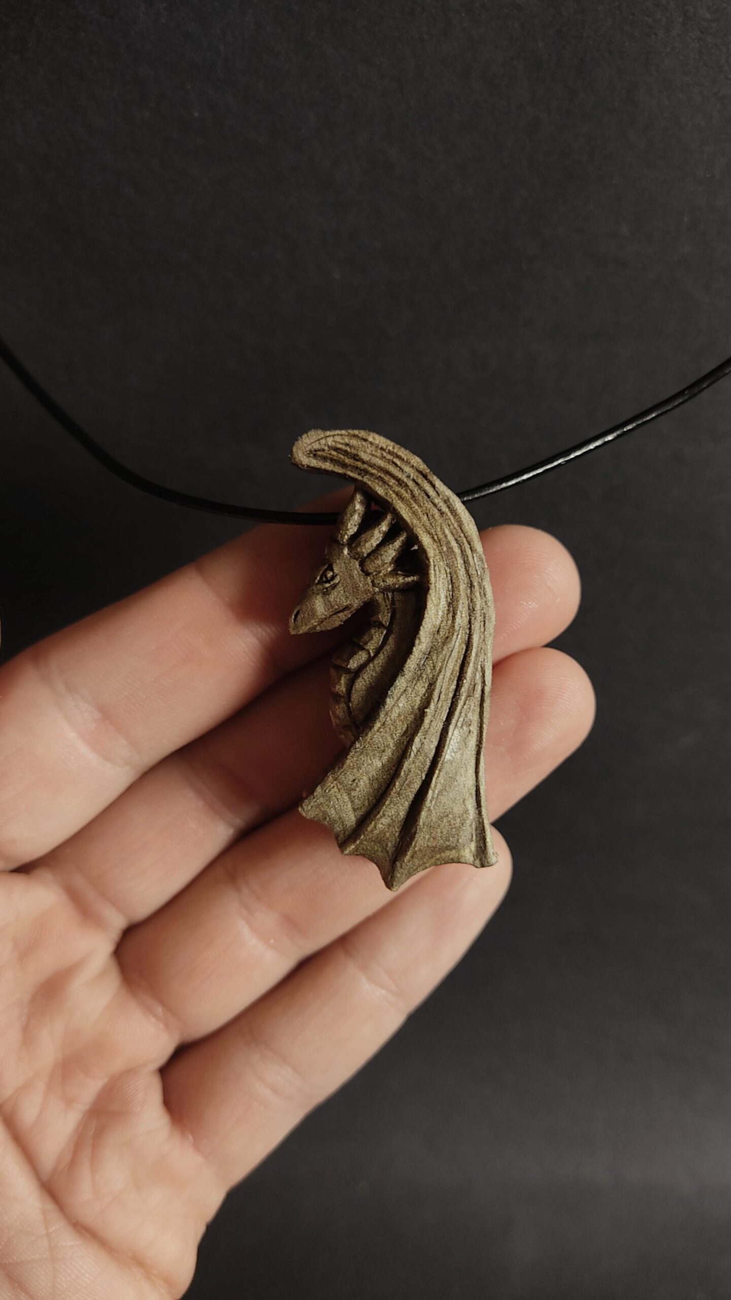 Ręcznie rzeźbiona zawieszka, której każdy detal i kształt, tworzyłem używając tylko najwyższej jakości drewna i moich ulubionych ręcznych narzędzi.